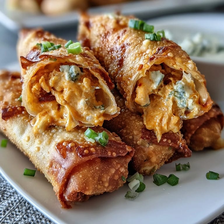 Save to Pinterest My friend showed up to my Super Bowl party with a casserole dish of buffalo chicken dip and a bag of tortilla chips, and by halftime, people were scraping the edges with their fingers. I stared at that empty dish and thought: what if I could make this portable? The next week, I bought egg roll wrappers on a whim and stuffed them with the same creamy, spicy filling. When I pulled the first golden roll from the oil, still crackling and too hot to bite, I knew I'd never go back to the dip alone.