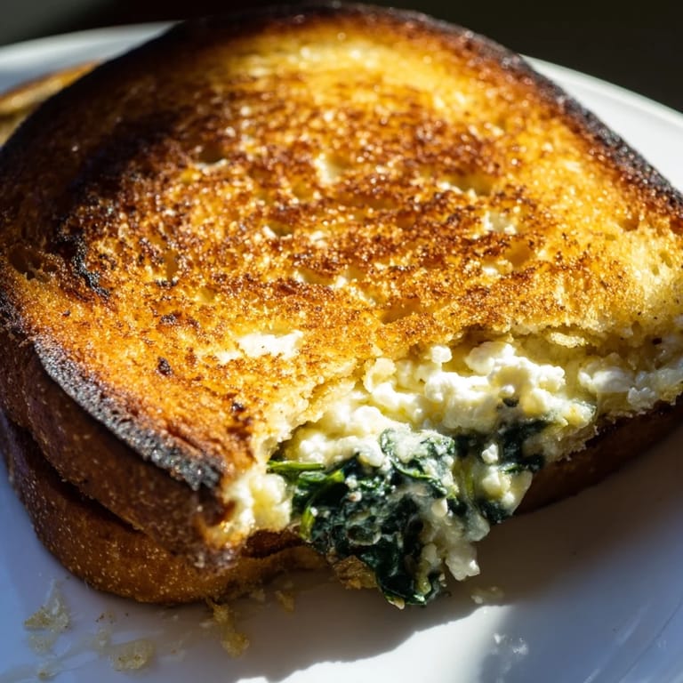 Save to Pinterest The first time I made this spinach and feta stuffed grilled cheese, I was craving something comforting but still fresh and vibrant. I had just bought a block of creamy feta from the local market and a bunch of spinach that needed using. That evening, as the garlic hit the warm olive oil, my kitchen filled with such an incredible aroma that I knew I was onto something special. The way the salty feta melted into the wilted spinach created this perfect balance of tangy and savory that I honestly couldn't stop eating. Now it is my go-to when I want grilled cheese that feels a little more grown up but still delivers all the nostalgic comfort.
