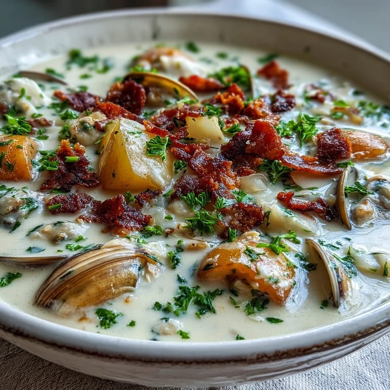 Save to Pinterest The first time I made New England clam chowder was during a brutal February when my apartment felt like an icebox and I needed something that would warm me from the inside out. I'd never worked with fresh clams before, and watching them pop open in the steam felt like some kind of kitchen magic. My roommate wandered in, drawn by the smell of rendered salt pork and simmering cream, and we ended up eating straight from the pot while standing at the stove. That's still how I judge a good chowder by whether it demands to be eaten immediately, regardless of propriety or bowls.
