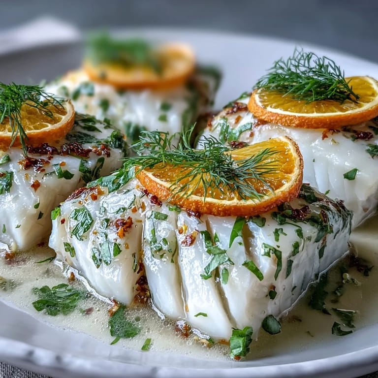 The beauty of this recipe lies in the gentle poaching method, which ensures the fish remains incredibly moist and flaky. By nesting the fillets into a fragrant poaching liquid of stock, wine, and aromatics, you infuse the cod with deep flavor while keeping the preparation simple and effortless.