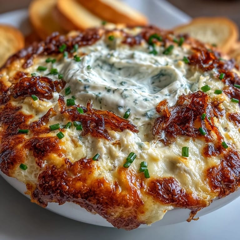 Save to Pinterest My neighbor walked into my kitchen mid-afternoon, drawn by the smell of caramelizing onions and something smoky baking in the oven. She didn't even say hello—just stood there sniffing the air like a divining rod pointed at pure comfort. That's when I knew this Smoked Gouda and Onion Dip had crossed from being a recipe I was testing into something that demanded to be shared at every gathering. The way the cheese bubbles and turns golden, how the sour cream mellows into something almost luxurious, it just works.